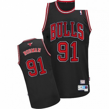 - Mens Adidas Chicago Bulls 91 Dennis Rodman Authentic BlackRed Strip Throwback NBA Jersey