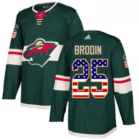 - Mens Adidas Minnesota Wild 25 Jonas Brodin Authentic Green USA Flag Fashion NHL Jersey