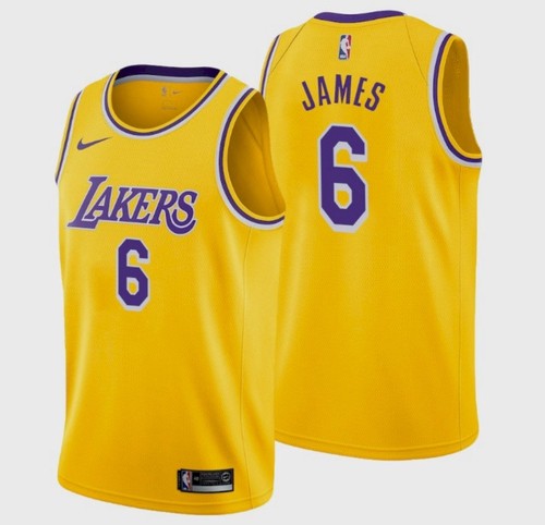- Men's Los Angeles Lakers #6 LeBron James Bibigo Yellow Stitched Basketball Jersey