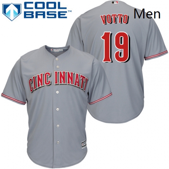 - Mens Majestic Cincinnati Reds 19 Joey Votto Replica Grey Road Cool Base MLB Jersey