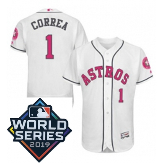 Home :: MLB :: 2019 World Series :: Astros Cool Base :: Mens Majestic Houston Astros 1 Carlos Correa Replica White 2016 Mothers Day Cool Base Sitched 2019 World Series Patch Jersey