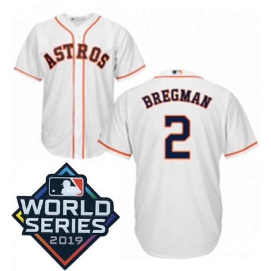 Home :: MLB :: 2019 World Series :: Astros Cool Base :: Mens Majestic Houston Astros 2 Alex Bregman Replica White Home Cool Base Sitched 2019 World Series Patch Jersey