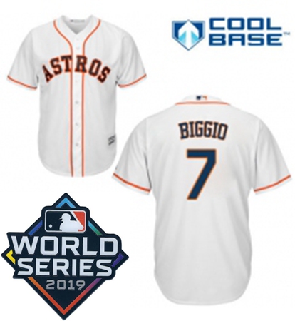 Home :: MLB :: 2019 World Series :: Astros Cool Base :: Mens Majestic Houston Astros 7 Craig Biggio Replica White Home Cool Base Sitched 2019 World Series Patch Jersey