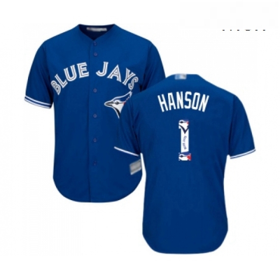 - Mens Toronto Blue Jays 1 Alen Hanson Replica Blue Alternate Baseball Jersey