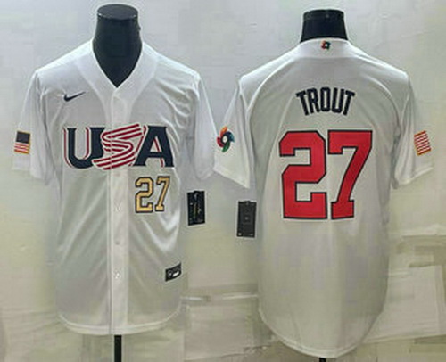 - Men USA Baseball 27 Mike Trout 2023 Red World Baseball Classic Stitched Jersey