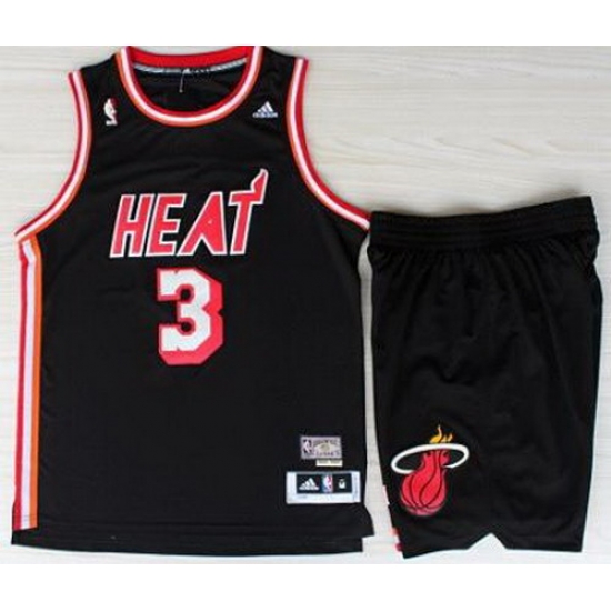 - Miami Heat 3 Dwayne Wade Black Jerseys&Shorts
