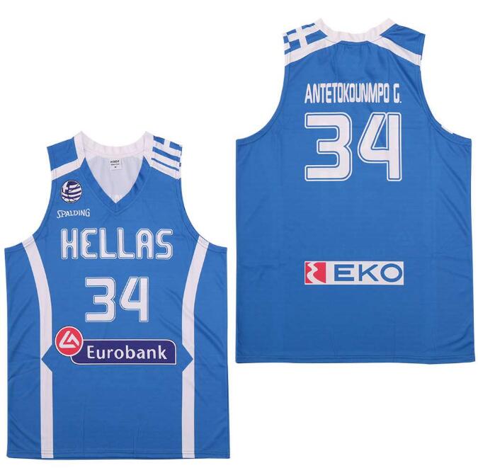 - NBA Giannis Antetokounmpo 34 Hellas Eurobank Greece Jersey White