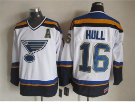 - St. Louis Blues #16 Brett Hull Light Blue Red CCM Throwback Stitched NHL Jersey