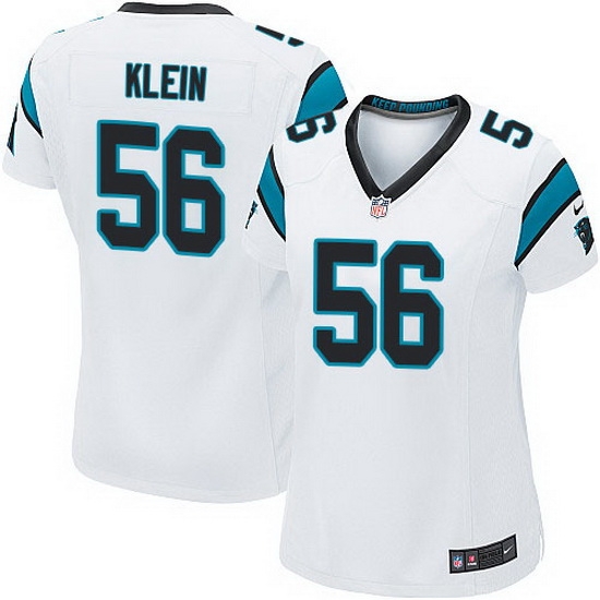 - Nike Panthers #95 Charles Johnson White Team Color Women Stitched NFL Jersey
