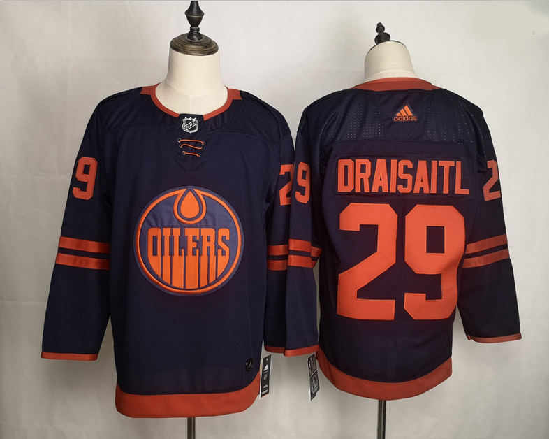 - Men Edmonton Oilers 29 Leon Draisaitl Navy White Stitched Jersey