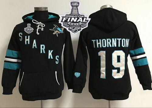 - Men San Jose Sharks 19 Joe Thornton Black Sawyer Hooded Sweatshirt Stitched NHL Jersey