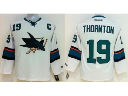 - San Jose Sharks 19 Joe thornton white jerseys A patch