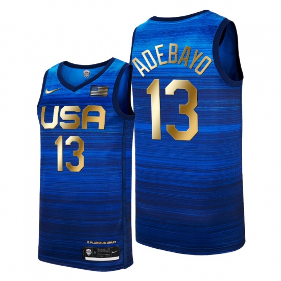 - Men's USA Team Bam Adebayo Away Blue 2021 Tokyo Olympics Jersey