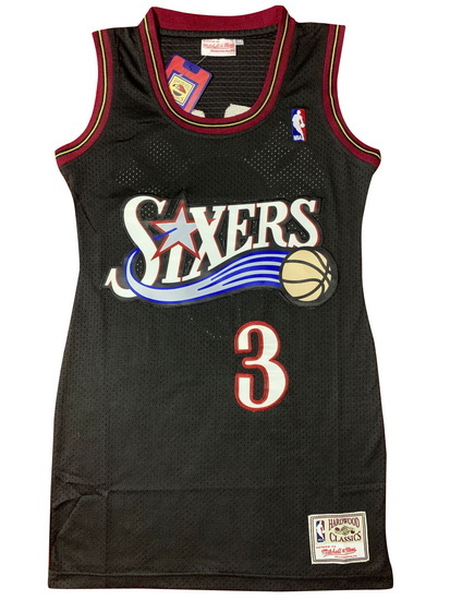 - Women 76ers 3 Allen Iverson Dress Stitched Jersey Black II