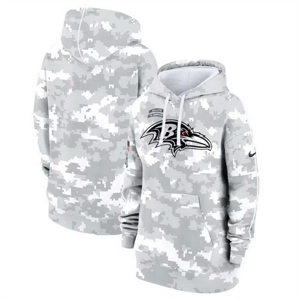 - Women Baltimore Ravens 2024 Arctic Camo Salute To Service Club Fleece Pullover Hoodie