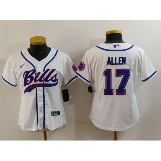 - Women Buffalo Bills 17 Josh Allen White Cool Base Stitched Baseball Jersey 3