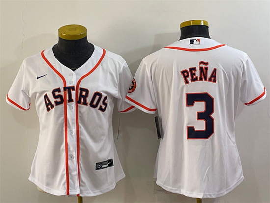 - Women Houston Astros 3 Jeremy Pena Orange With Patch Cool Base Stitched Baseball Jersey 1