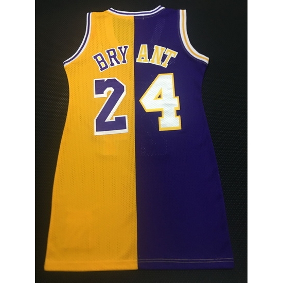 - Women Los Angeles Lakers 23 Lebron James Dress Stitched Jersey Yellow Purple Split