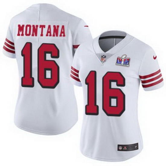 Home :: NFL :: 2024 Super Bowl LVIII :: San Francisco 49ers Women :: Women NFL San Francisco 49ers 16 Joe Montana White Throwback Vapor Untouchable Limited Stitched 2024 Super Bowl LVIII Jersey