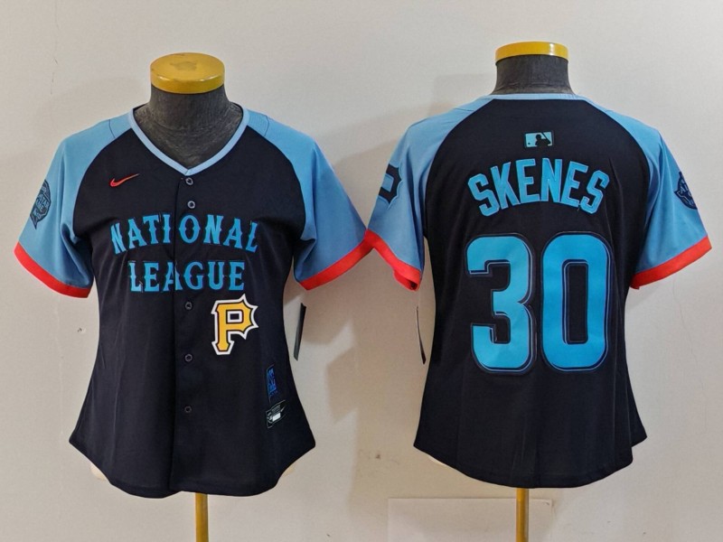 - Women National League 30 Paul Skenes Navy 2024 All Star Limited Stitched Baseball Jersey 7