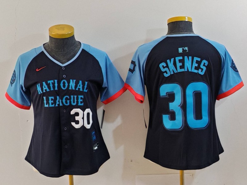 - Women National League 30 Paul Skenes Navy 2024 All Star Limited Stitched Baseball Jersey 3