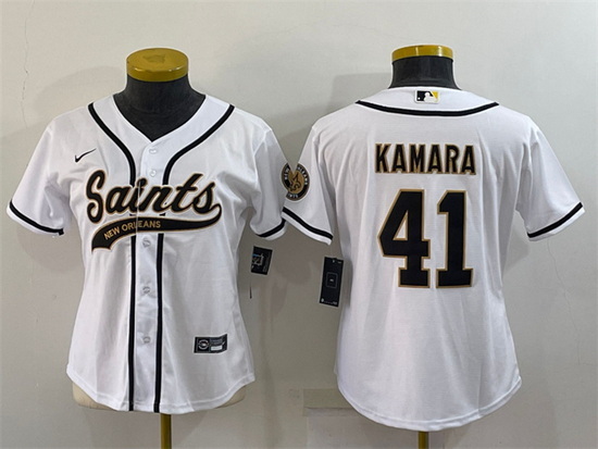 - Women New Orleans Saints 41 Alvin Kamara Black With Patch Cool Base Stitched Baseball Jersey