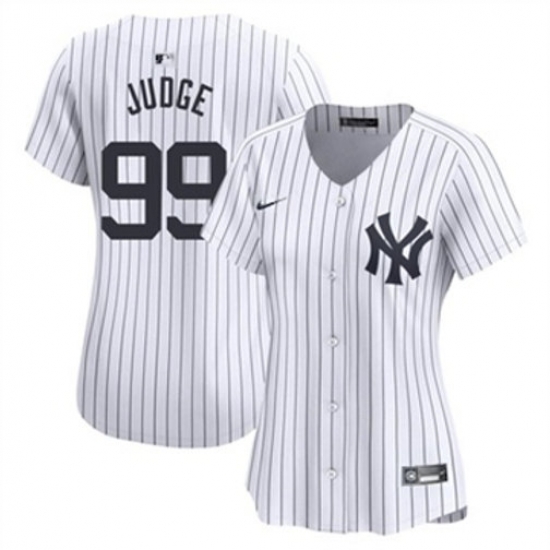 - Women New York Yankees 99 Aaron Judge White Pink Pinstripe Limited Stitched Baseball Jersey