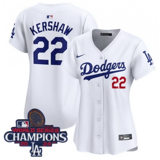 Home :: MLB :: 2024 World Series Champions :: Women :: Women Nike Los Angeles Dodgers Clayton Kershaw #22 White Flex Base 2024 World Series Champions Stitched MLB Jersey