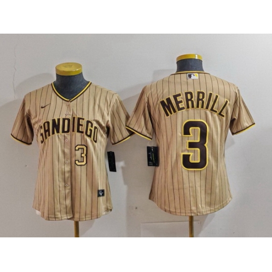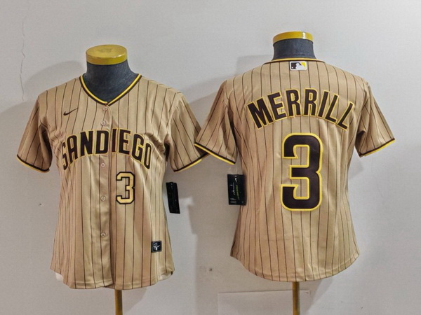- Women San Diego Padres Tan Team Big Logo Stitched Baseball Jersey