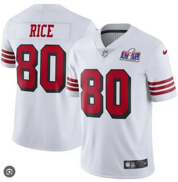 Home :: NFL :: 2024 Super Bowl LVIII :: San Francisco 49ers Women :: Women San Francisco 49ers 80 Jerry Rice White Throwback Vapor Untouchable Stitched Football 2024 Super Bowl LVIII Jersey