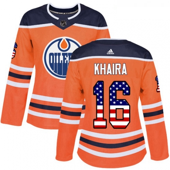 - Womens Adidas Edmonton Oilers 16 Jujhar Khaira Authentic Orange USA Flag Fashion NHL Jersey