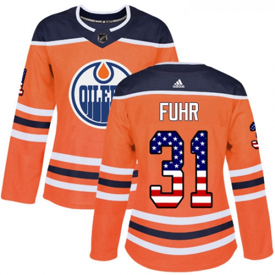 - Womens Adidas Edmonton Oilers 4 Kris Russell Authentic Orange USA Flag Fashion NHL Jersey