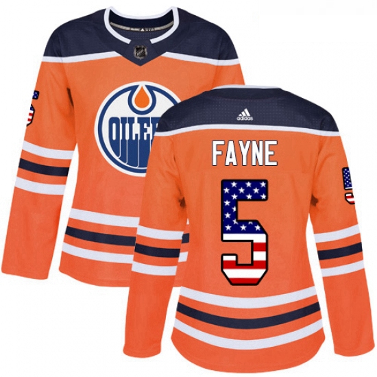 - Womens Adidas Edmonton Oilers 4 Kris Russell Authentic Orange USA Flag Fashion NHL Jersey
