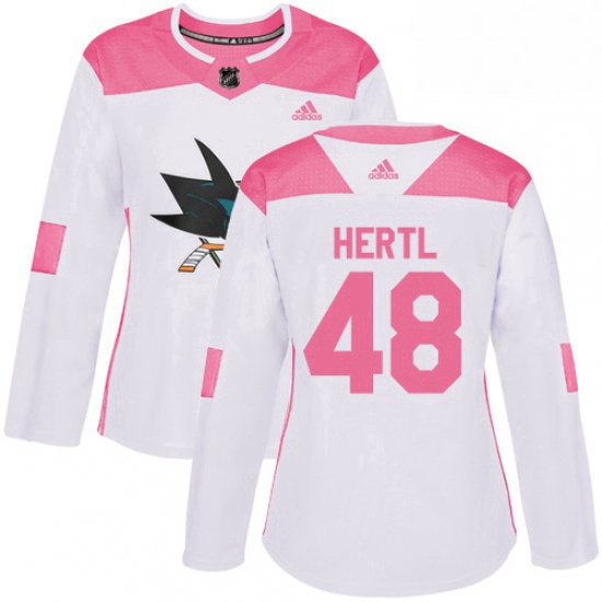 - Womens Adidas San Jose Sharks 48 Tomas Hertl Authentic WhitePink Fashion NHL Jersey