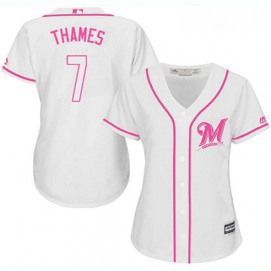 - Womens Majestic Milwaukee Brewers 7 Eric Thames Authentic White Alternate Cool Base MLB Jersey