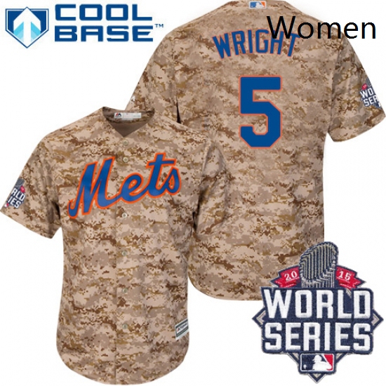 - Womens Majestic New York Mets 5 David Wright Authentic CreamBlue Strip MLB Jersey