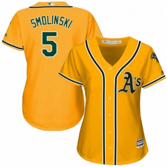- Womens Majestic Oakland Athletics 5 Jake Smolinski Replica Gold Alternate 2 Cool Base MLB Jersey