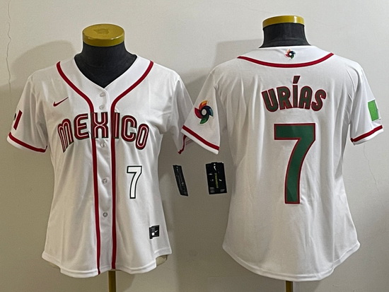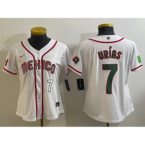 - Women's Mexico Baseball #7 Julio Urias Number 2023 White World Classic Stitched Jersey7