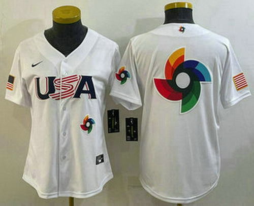 - Women's USA Baseball Big Logo 2023 White World Baseball Classic Stitched Jerseys