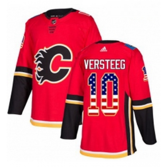 - Youth Adidas Calgary Flames 10 Kris Versteeg Authentic Red USA Flag Fashion NHL Jersey