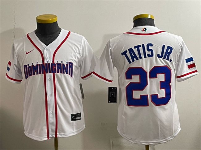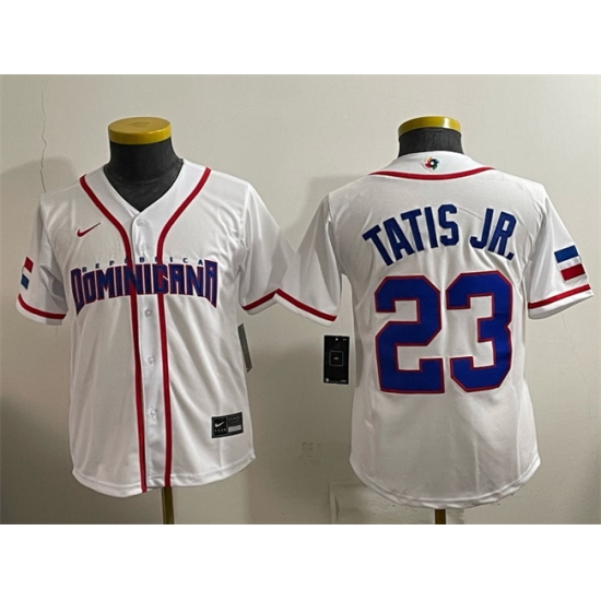 Youth Dominican Republic Baseball Fernando Tatis Jr White 2026 World Baseball Classic Home Stadium Stitched Baseball Jersey