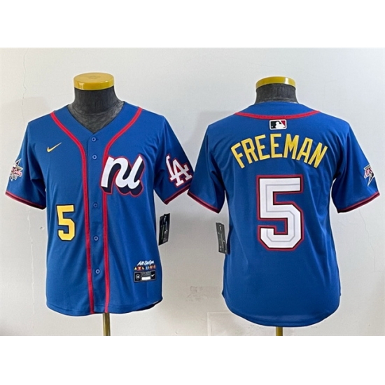 Youth National League 5 Freddie Freeman Blue 2025 All Star Edition Limited Stitched Baseball Jersey