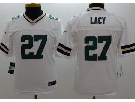 - Youth Nike Green Bay Packers #27 Eddie Lacy White Stitched NFL Limited Jersey