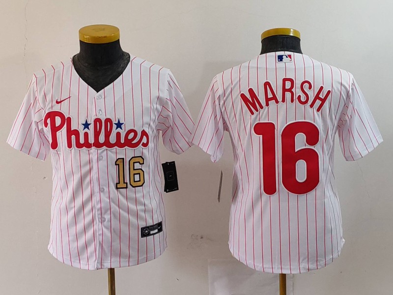 - Youth Philadelphia Phillies Team Big Logo White Cool Base Stitched Baseball Jersey 5