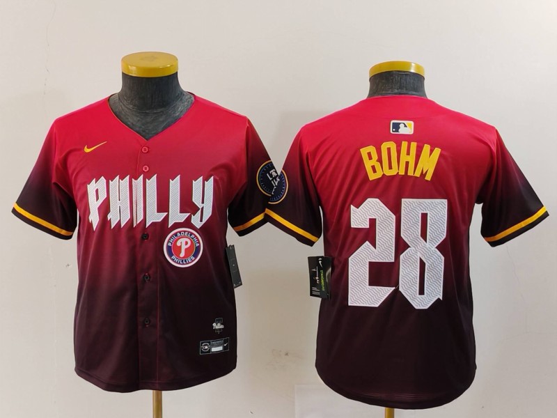 - Youth Philadelphia Phillies 28 Alec Bohm Blue Cool Base Stitched Baseball Jersey
