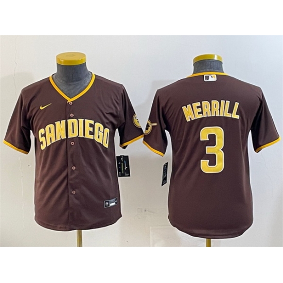 - Youth San Diego Padres 3 Jackson Merrill Brown Stitched Baseball Jersey