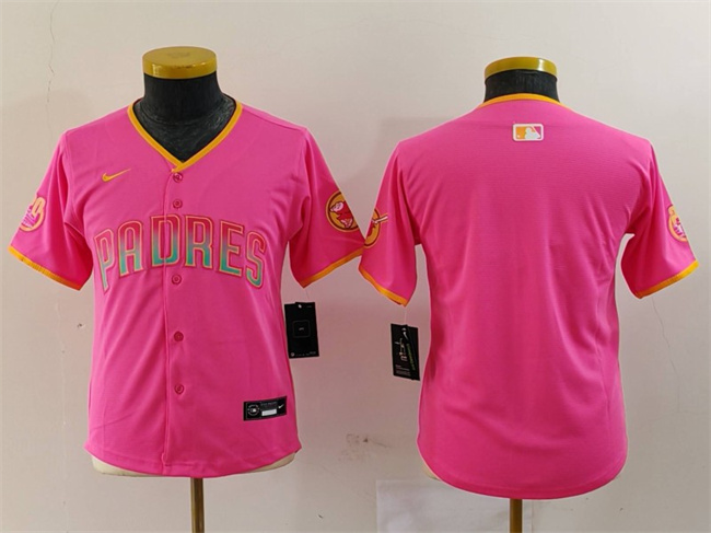 - Youth San Diego Padres Team Big Logo Pink Stitched Baseball Jersey 2