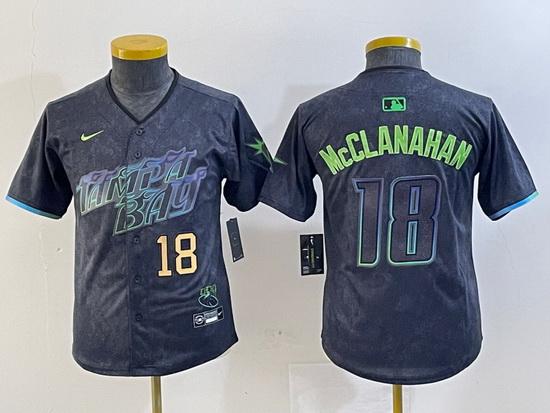 - Youth Tampa Bay Rays 18 Shane McClanahan Charcoal 2024 City Connect Limited jerseys 1