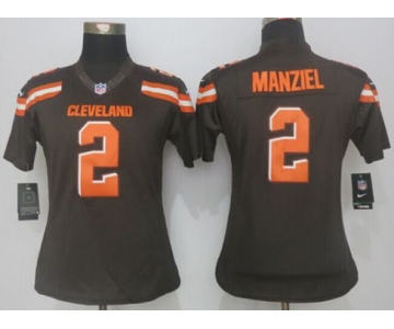 - Women New Browns #2 Johnny Manziel White Stitched NFL Limited Platinum Jersey